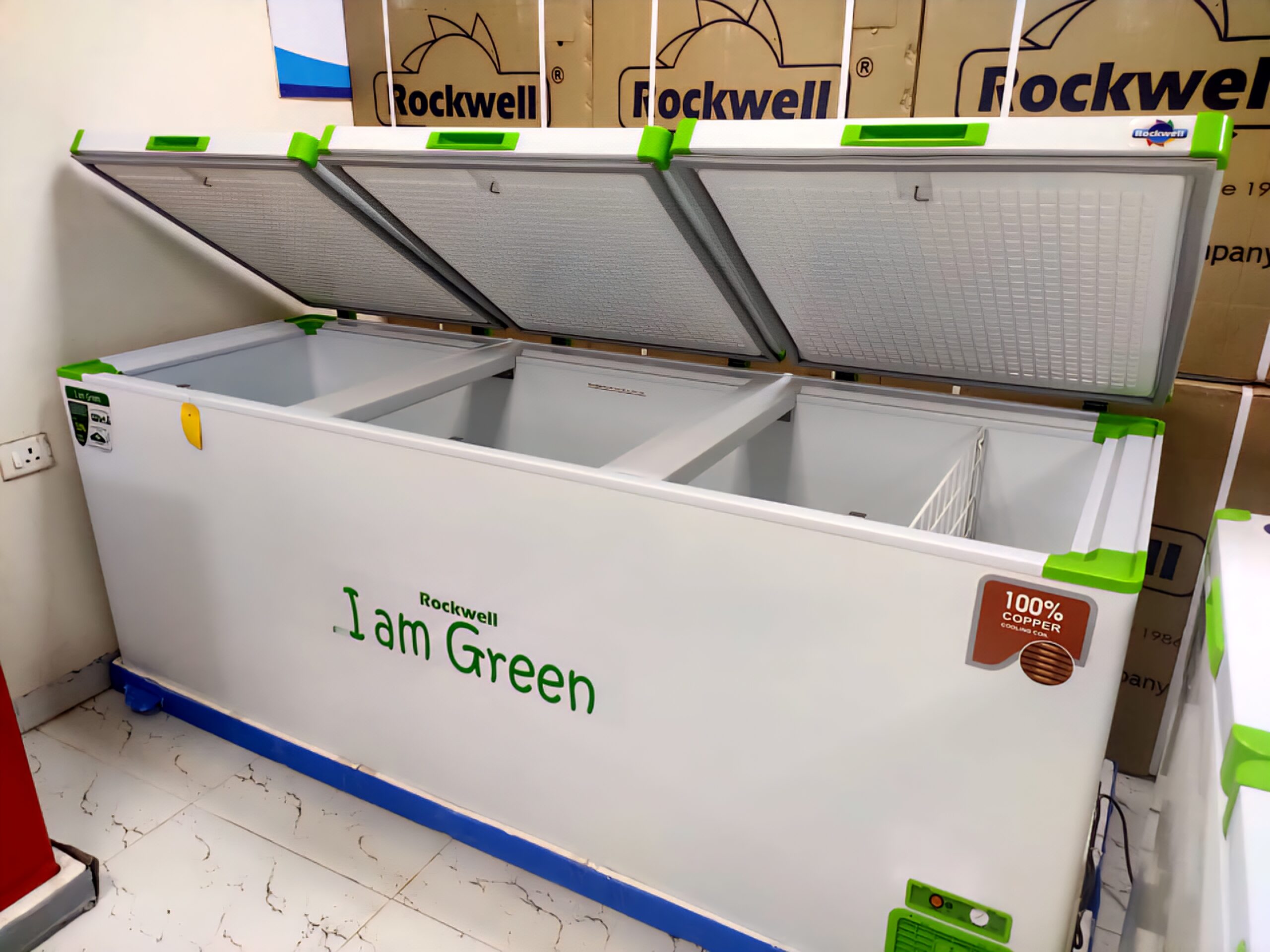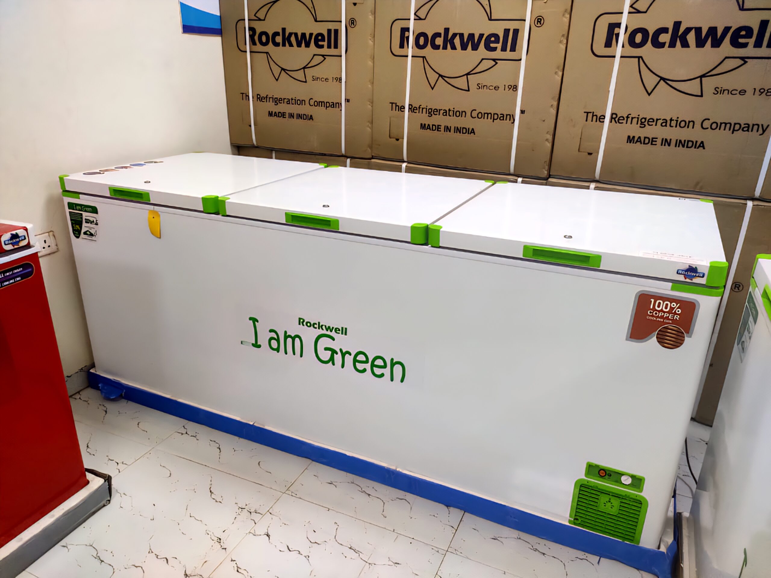 Rockwell GREEN FREEZERS are one of the most advanced refrigeration solutions in India built to perform even in extreme conditions. With superior 90 MM INSULATION they maintain cooling inspite of long power outage. They help your business flourish by consuming upto 53% less power than regular freezers and offer peace of mind with 10 years warranty (body) since the inner coil designing is done using corrosion resistant 100% copper.